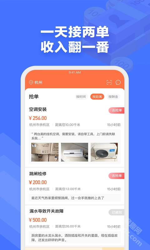 工单管理:平台业务覆盖全国范围,能及时向用户推送附近的工单提醒,可供处理的工单资源十分丰富。