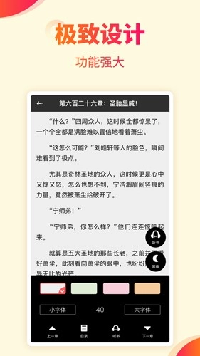 我们针对传统小说阅读器的诸多细节展开了优化工作,致力于让每一处细节都符合最易用的要求,以此为您带来理想的使用体验。