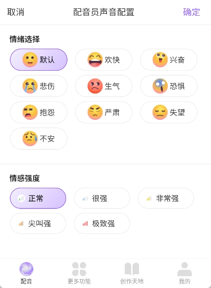 我们能够按照需求试听配音,调整音调之类的参数,还可以保存配音文件或者分享到社交平台。