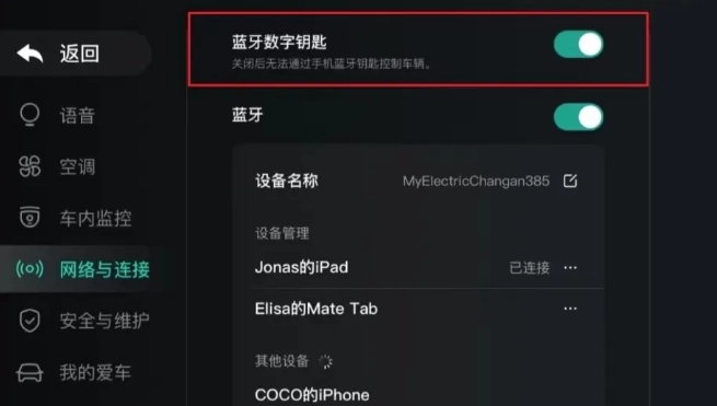 在使用蓝牙钥匙功能之前,需要在车辆的中控显示屏上完成以下设置: