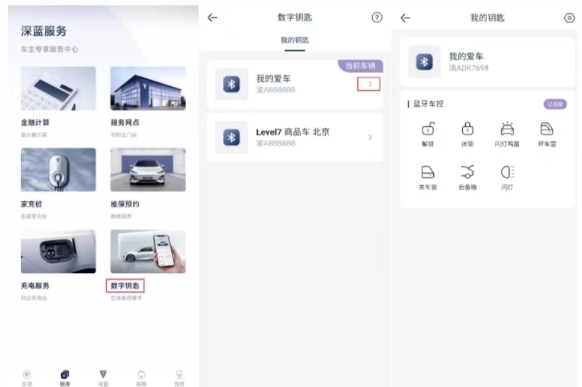 选择对应的车辆(该功能面向名下拥有多辆深蓝汽车的用户)。