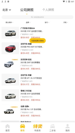 点击新车,这里可以看到月租和首付多少钱;