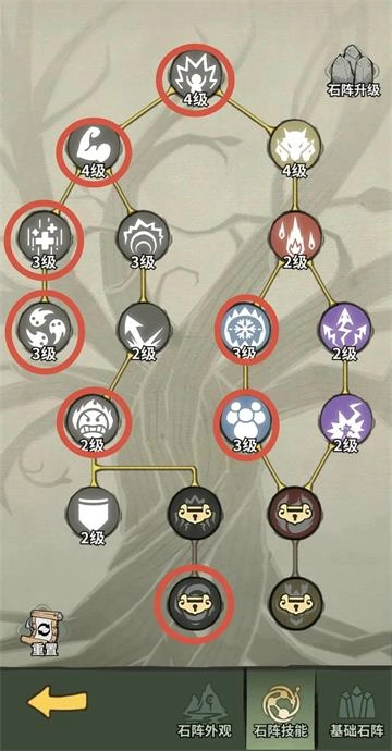 我圈出的这些技能相对更关键些,像那些纯伤害类的技能和靠概率触发的技能,我个人感觉不太实用。不过要是补天石充足的话,倒是可以考虑把它们升级一下。