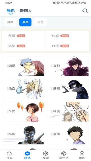 首先为大家推荐板块,有腾讯和漫画人这两大热门漫画平台,上面有超多热门漫画可以抢先观看。