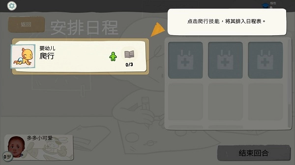 人生里的第一项技能就是最基础的那个:爬行,点击消耗悟性就能开始学习啦。
