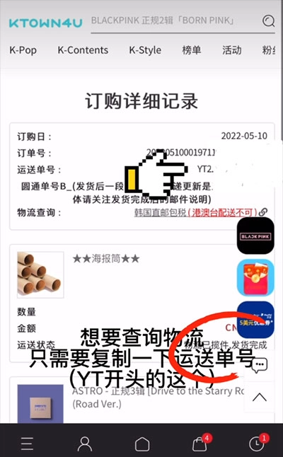 获取物流单号的方法:进入订单详情页面查找物流单号(一般以“yt”开头),然后把该单号复制下来。