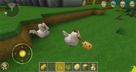 点击快捷栏里的斧子,用右手握住它,然后靠近一棵树干,把手指按在树干的方块上,此时会出现进度条,等进度条走到100%,树干就能被顺利砍下来了。