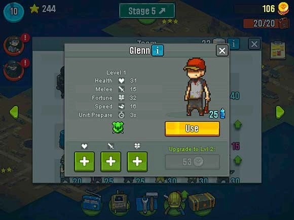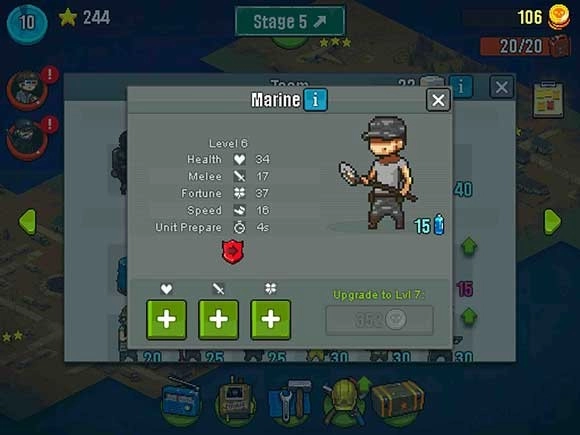 卡车的升级仅需消耗金币,而士兵的升级流程则要复杂不少——其血量、攻击力与幸运值这三项属性的提升,都得分别获取对应的补给道具方可完成升级。