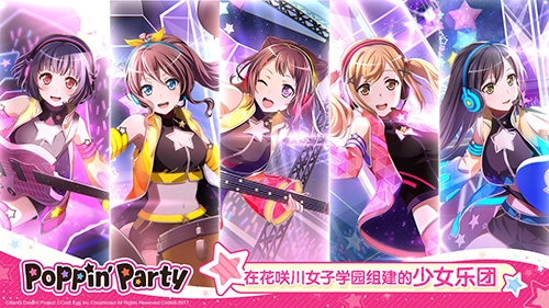 游戏里有5支风格各不相同的少女乐队亮相:在花联川女子学园成立的少女乐团Poppin’Party,拥有精湛技艺的本格派组合Roselia,由青梅竹马五人组成的正统系少女摇滚乐队Afterglow,因事务所规划而诞生的偶像乐团Pastel Palettes,还有以“把笑容传递到世界每个角落”为目标的Hello、HapPy World!。玩家能够和25位性格独特的乐队成员一同开展乐队相关活动,聆听各有特色的乐队音乐。在优秀的Live2D技术加持下,少女们在推进剧情和进行对话时,会呈现出流畅自然的表情与动作,让角色显得更加鲜活真实。