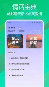flai全功能解锁版(无需会员)是一款专注于情话话术的实用小工具,能为用户提供各类爱情表达技巧,指导约会方法,助你快速吸引心仪的女生!通过学习其中的恋爱聊天技巧,你可以轻松开启对话,高效摆脱单身状态,成功追求到理想的伴侣。无论是丰富的情话内容、灵活的聊天回复策略,还是专业的恋爱技巧教学与情感问题咨询,这款工具都能帮你化解与女生交流时的尴尬,成为维系感情的得力助手!