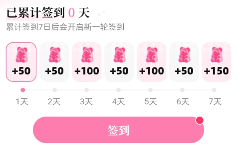 在怦怦连续签到满7天,每天都能领取软糖奖励,完成7天签到后将开启新一轮的签到活动。