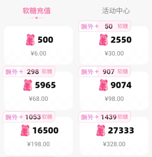 在软糖重置界面中氪金可以购买不同数量的软糖