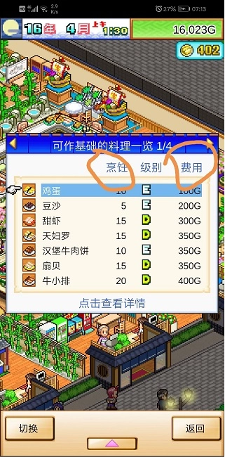 - 开发费:指研发新菜谱过程中产生的费用。举例来说,乌贼对应的开发费是450G。
