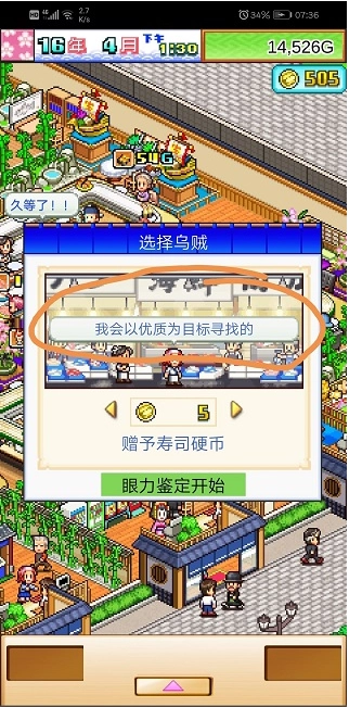 当研发进度达到四分之三时,系统会提示需要赠予寿司硬币。
