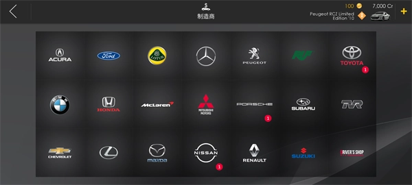 在制造商页面可以查看各种制造商生产的各种车型。