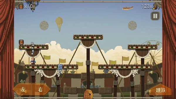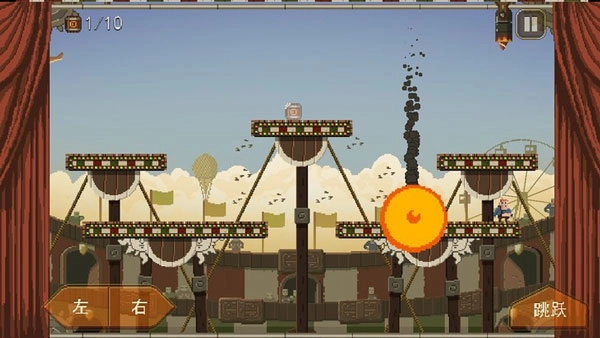 在这款游戏里,我们陷入了一场荒诞的马戏团表演,得躲开所有陷阱活下去,成为最终的赢家。接下来先一起了解下游戏操作:点击屏幕下方标有左右箭头的按钮控制角色左右移动,点击跳跃键让角色起跳,连续点两次还能触发二段跳。按钮位置能在设置界面调整,操作不算复杂,现在就进入游戏吧。