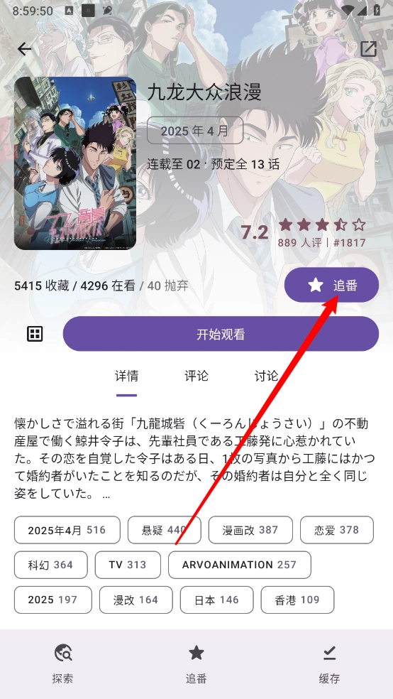 一键点击进入播放详情页,点击"追番"。