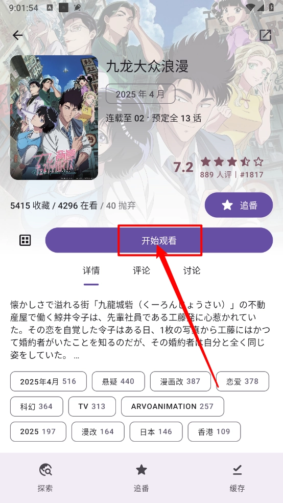 在动漫详情页,点击"开始观看"。