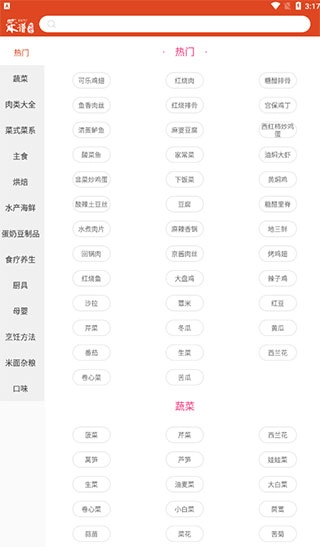 查看给出的菜谱分类标签,挑选对应的标签也能快速找到菜谱。
