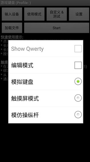打开虚拟游戏键盘,查看使用提示。