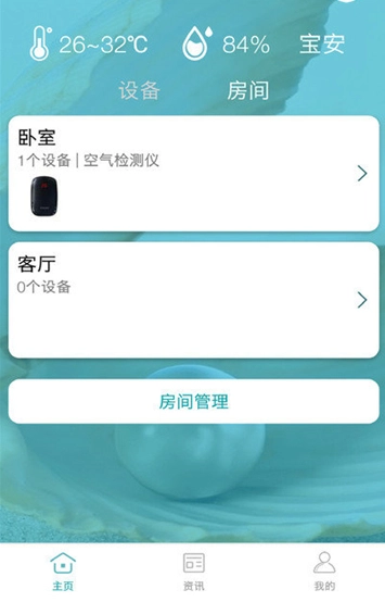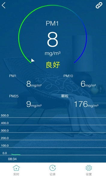 界面上方呈现着温度与湿度的数据,同时你也能够获取当前的空气质量信息。