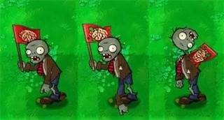这种僵尸除了手持旗子外,移动速度比普通僵尸稍快一些,一旦旗子掉落,僵尸就会随之死亡。