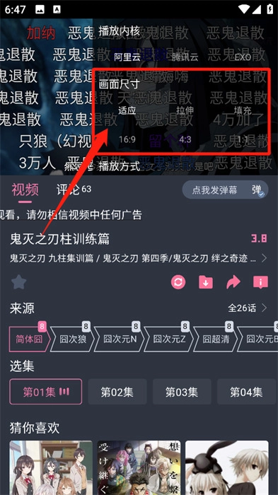 如图所示,进入播放详情页,点击任意播放屏幕。