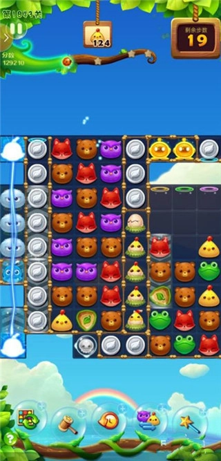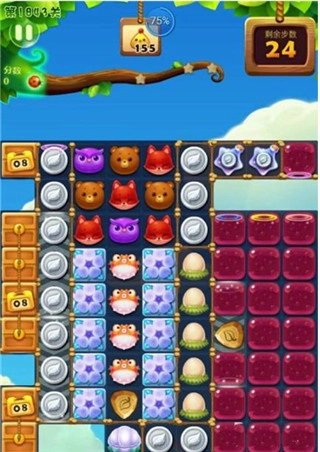 当三个颜色相同的小动物连成一条直线时,它们就会被消除。完成指定目标后即可通关。游戏包含四种不同的玩法模式,分别是分数挑战、指定消除任务、收集金豆荚以及云朵关卡。
