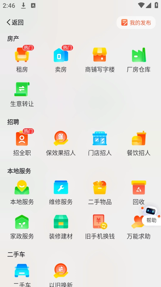 58同城是一款覆盖范围广泛的生活服务软件,能帮助用户找工作、找房子、买卖二手车等,其信息真实可靠,可满足用户在生活、求职等多方面的需求。用户还能在平台发布广告信息,它提供一站式生活服务,让生活变得更加便捷。