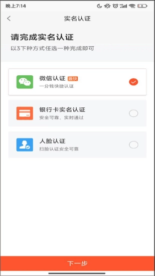 在新界面里,选择一种实名认证方式,点击下一步。