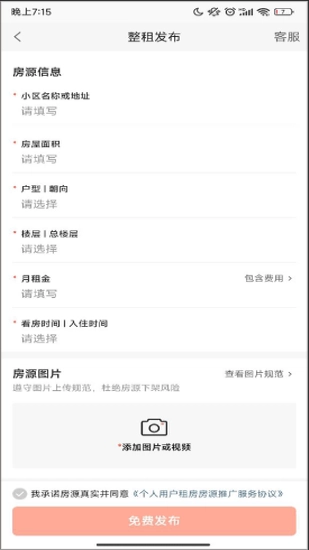 填写自己的房源信息后,即可发布租房信息。