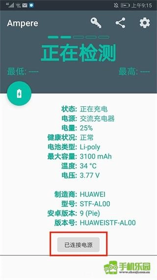 接着我们接通电源,此时能看到当前的电源类型、充电功率、电量以及电池的最低和最高容量等参数。