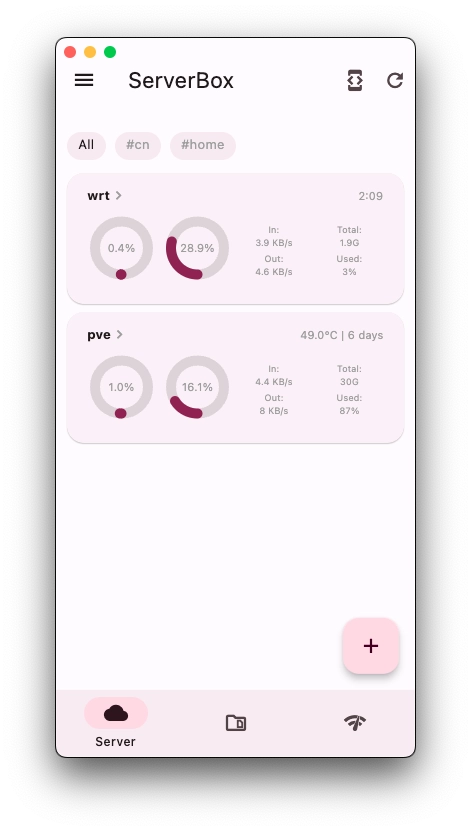 ServerBox是一款实用性很强的多平台服务器管理工具,它具备全平台覆盖、实时性能监测以及多样的管理功能等核心优势。借助这款工具,用户可以实时掌握服务器的运行状态,轻松实现跨设备的无缝管理;同时,它还能动态追踪服务器CPU、内存、磁盘等关键性能参数,并通过直观的图表呈现负载变化趋势,助力用户快速排查潜在问题、优化系统配置,进而更高效地完成各类复杂的服务器管理工作。