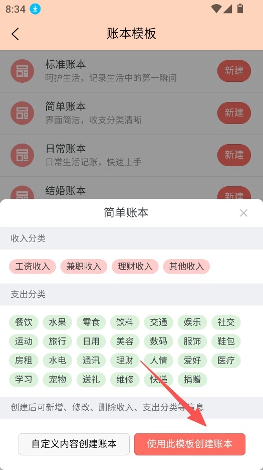 选择合适的账本模板,如简单账本。