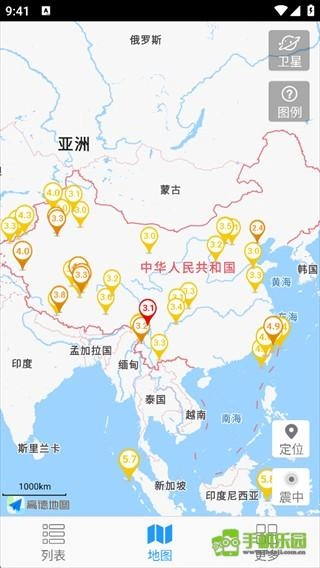 地震列表里的每一场地震都能在地图上精准定位,其震级规模与发生时间会借助标注符号来加以区分。
