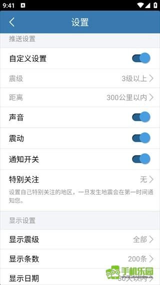 自定义地震推送设置