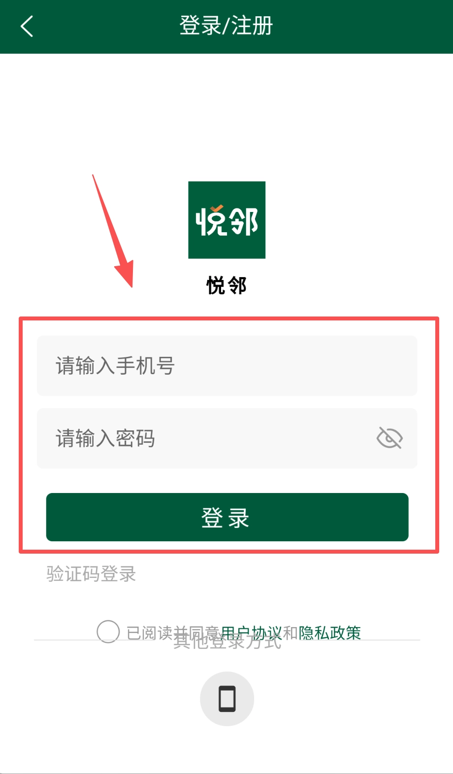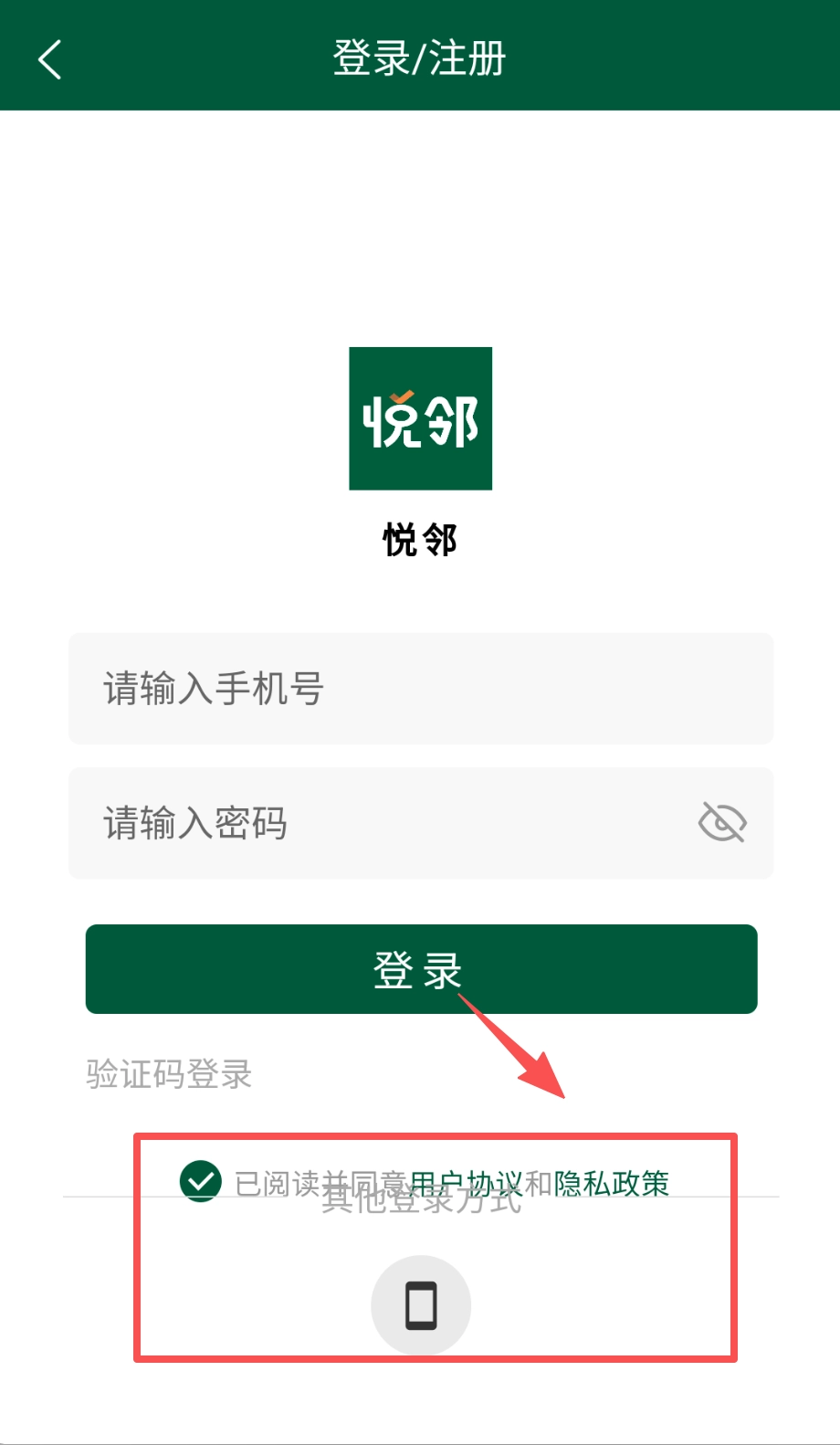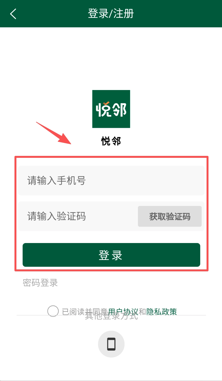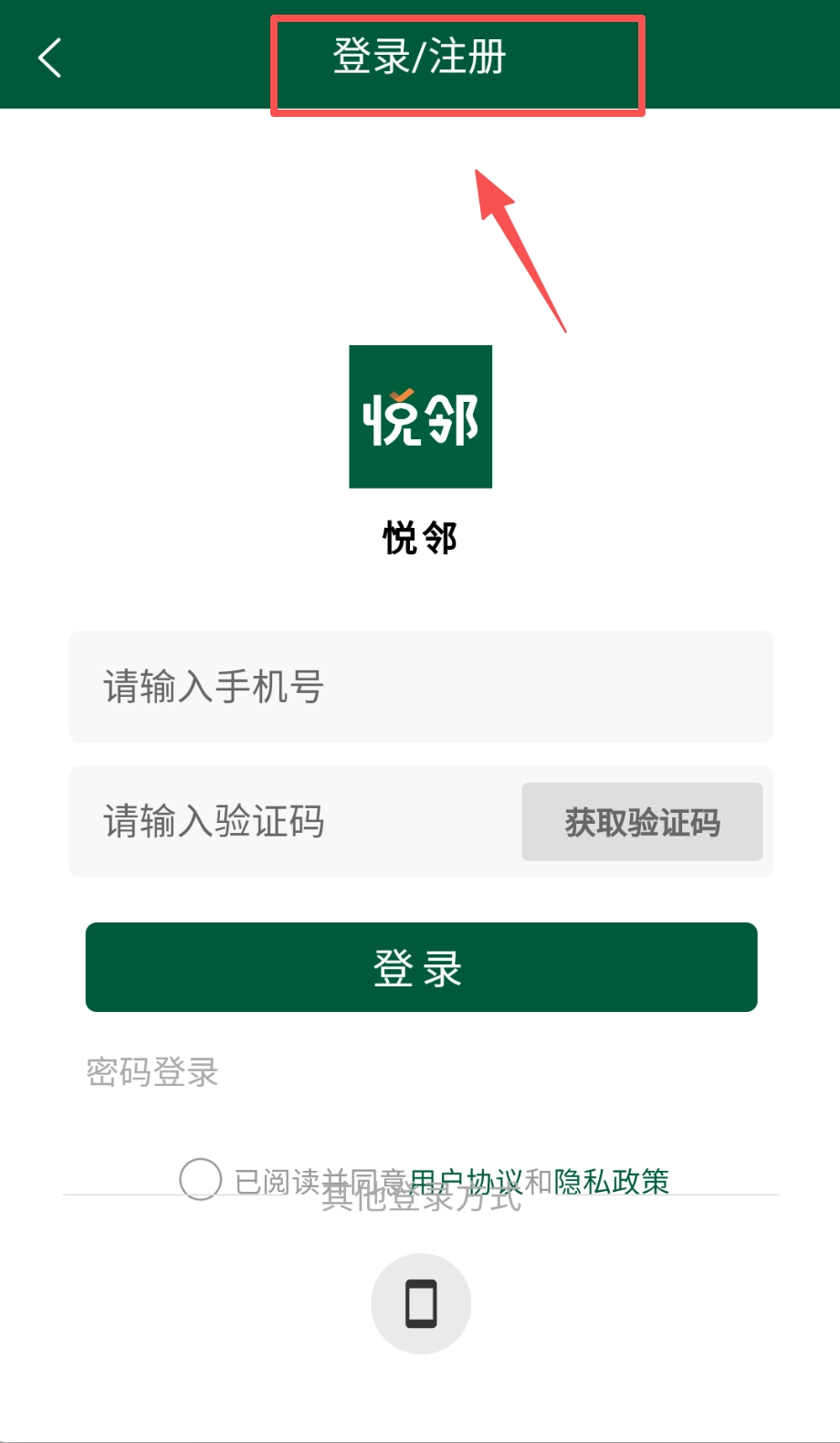 登录前别忘了勾选下方“已阅读并同意用户协议和隐私政策”前面的小圆圈来表示同意哦,页面最底部还有个“其他登录方式”的选项。