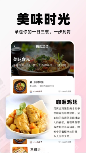 热门推荐:天天菜谱大全会依据你的口味偏好,为你推荐合适的菜谱哦。