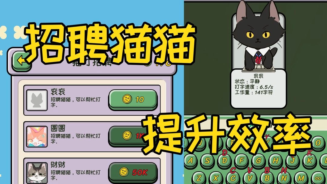 无限猫猫计划是一款休闲益智类手机游戏,其创作灵感源自无限猴子定理。在游戏里,玩家将化身为管理猫咪的角色,核心目标便是推动“无限猫猫计划”的实现。该计划由林郝博士提出,他打算让猫咪不间断地工作,借助无限的时间去创作出莎士比亚的著作。