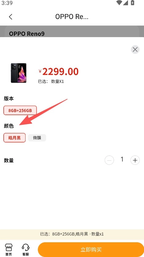在页面上选定目标产品,进入详情页面后确认版本、颜色等相关信息。