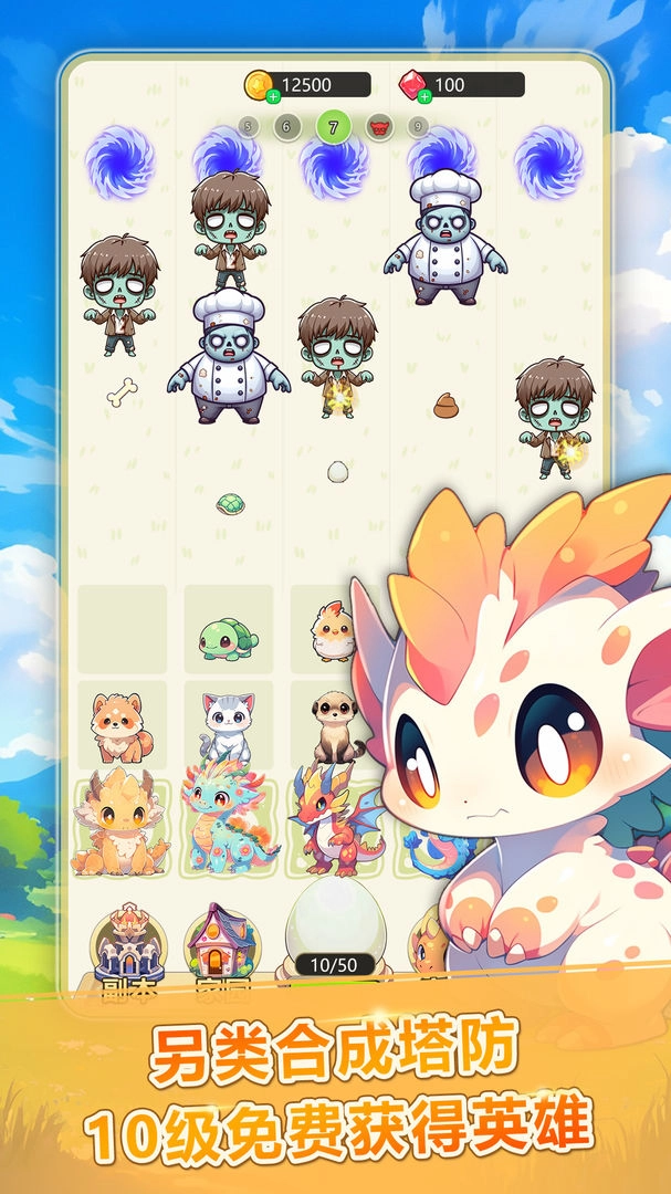 恐龙大战僵尸是一款十分有趣的合成塔防类手机游戏。在游戏里,玩家需要凭借自己的逐步运营,最终合成强大的恐龙,以此抵御僵尸一波接一波的攻击。游戏中,玩家增强防御的主要方式便是合成——通过将相同的恐龙防御塔进行合成,组合成更具威力的恐龙组合体。尽管这款游戏在玩法上沿用了传统的合成塔防模式,但它在音效与立绘设计上表现不俗,要是有喜爱这类游戏的玩家,不妨尝试游玩一番!