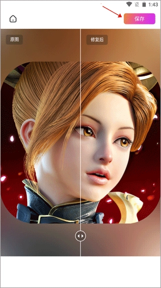 修复完成后,你能看到原图与修复后的对比效果,点击右上角的按钮即可保存图片。