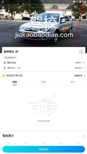 在驾校页面点击右上角的三个点。