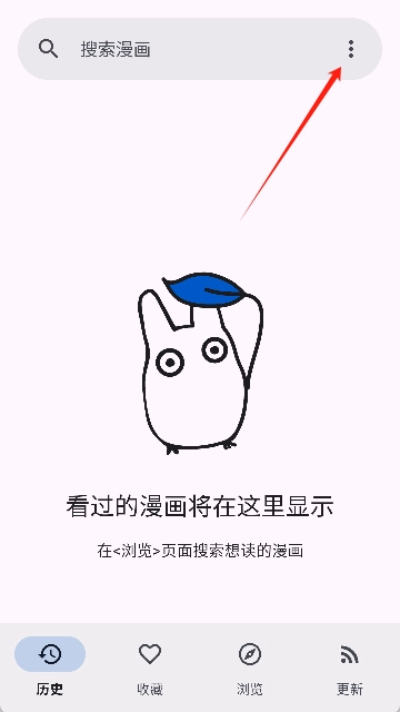 启动kotatsu软件后,点击界面右上角的三点图标。