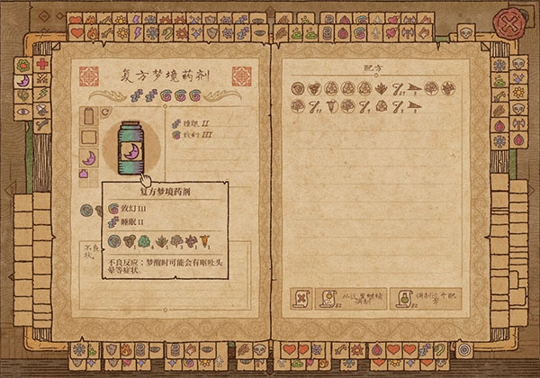 复方梦境药剂:具备致幻III级与睡眠II级效果,不过使用后在梦醒阶段或许会产生呕吐、头晕之类的不良反应。