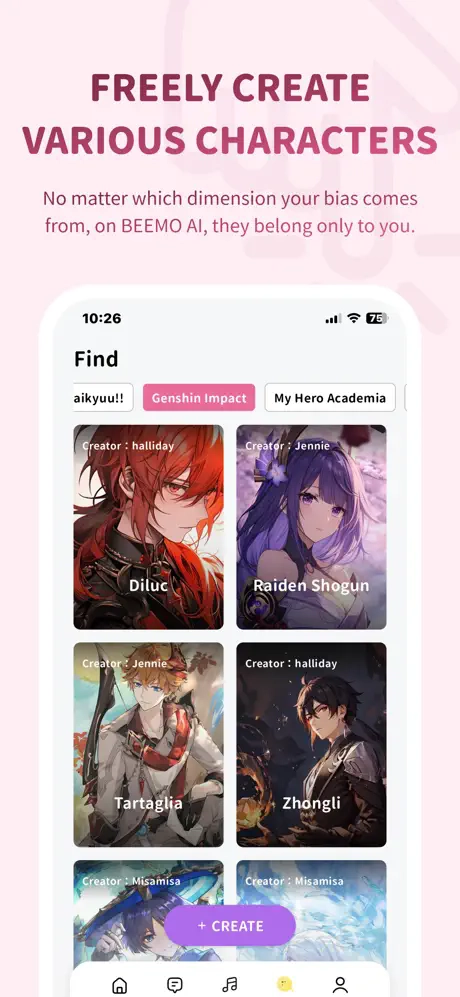 - 创作:借助简易的创作工具,打造出任何你心仪的角色吧。