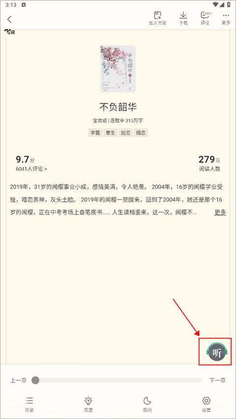 进入阅读页面后,点击屏幕,此时在右下角会出现一个标有“听”字的按钮。