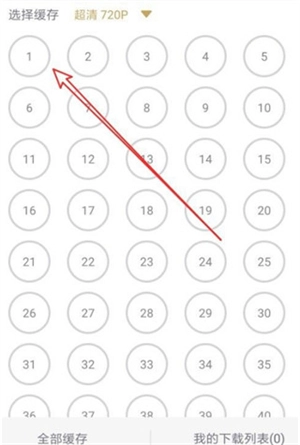这时会弹出当前播放视频的集数列表,从中选择想要缓存的剧集即可。