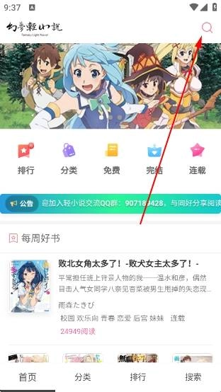 在幻梦轻小说主页的右上角点击放大镜图标,即可进入搜索页面。