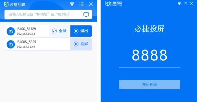 便捷投屏的方式有两种:一是扫码投屏,二是投屏码投屏,借助必捷投屏客户端软件,就能完成快速投屏操作。